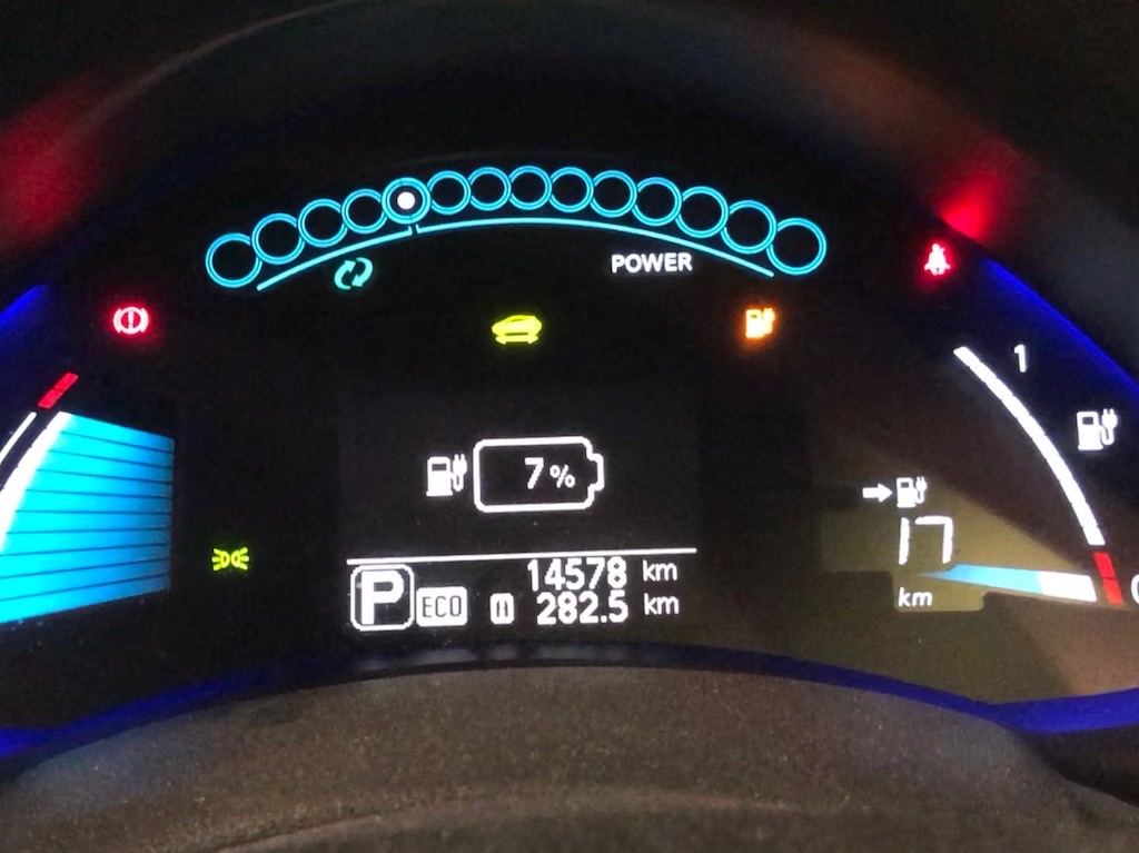 Estávamos a meio da Vasco da Gama quando apareceu o sinal de “Nível da bateria baixo”, com 33 Kms e 18 por fazer… Acabámos por chegar a casa com 7% de bateria e 17kms… UFA!!