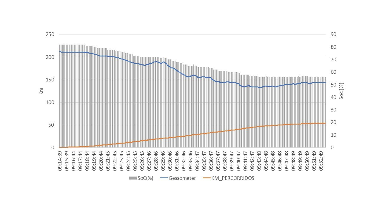 No inicio da viagem o SoC era de 82%, tendo chegado ao ENVE ainda com 56%.