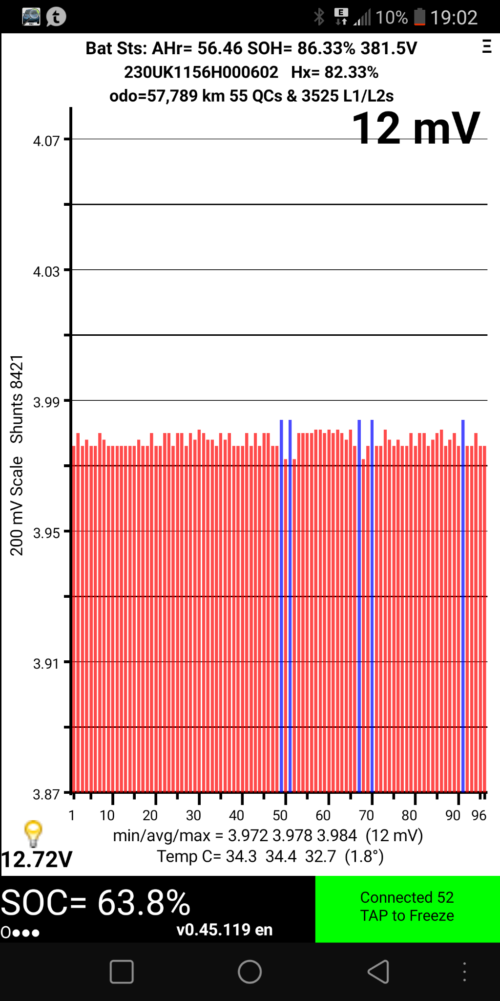 Por aquilo que tenho observado no leafspy e agora com 40% de bateria é claro que a célula 68 e 76 continuam a manter as voltagens mais baixas. Isto não deve augurar nada de bom!