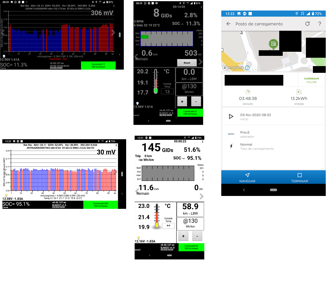O SOH está bem calculado pelo carro, curiosamente. 13.2/25kW.h = 52%, igual ao indicado pelo Leaf Spy. De 3,4V até à tartaruga jé não teria muita energia, talvez 0,5kW.h.
