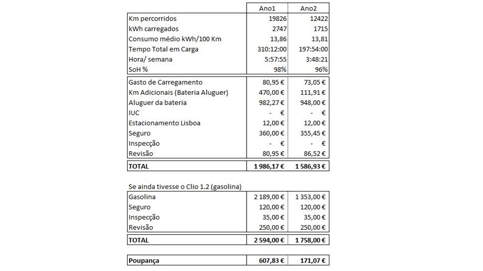 Aluguer da bateria (só porque sim, para evitar refutações) 982€ vs 0€/ano