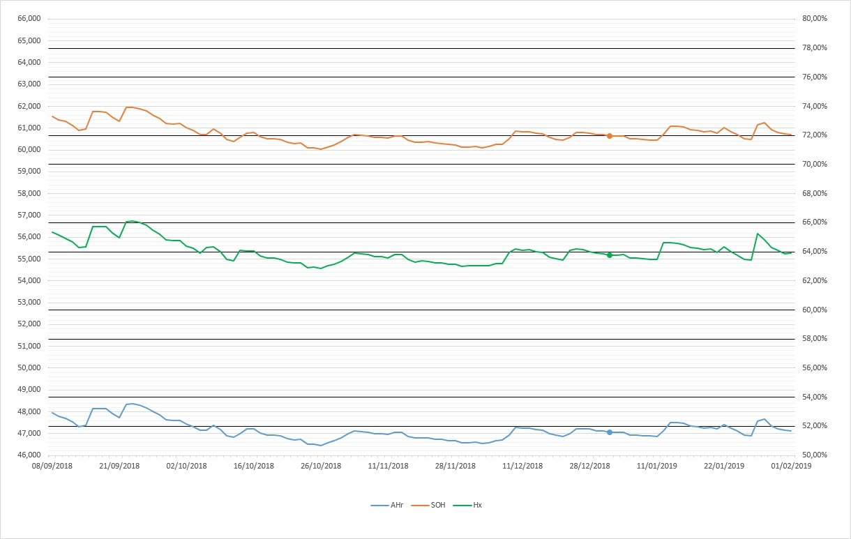 Tem alturas, mas sim parece que parou.migle Escreveu: 02 jan 2020, 21:02 Bom, não se pode dizer que o SoH desça vertiginosamente. Em quase dois anos, estava abaixo de 80%, quase nos 75%, agora está acima dos 70%...