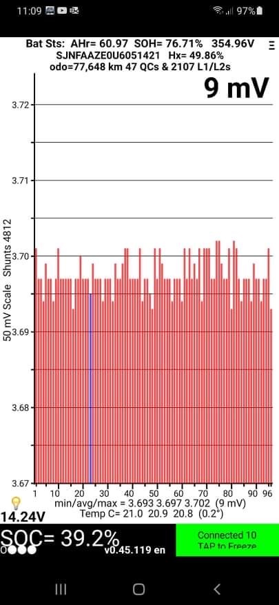 O SOH é de 76% um pouco baixo, mas habitual nestes carros.