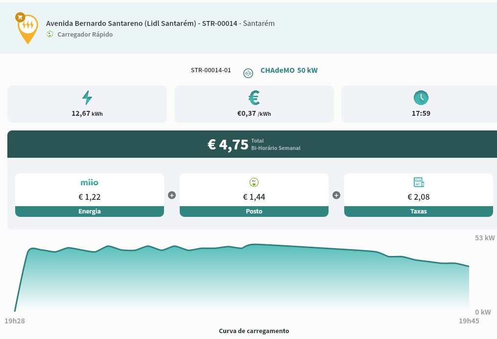 Regresso com ponto de paragem no PCR do Lidl de Santarém em viagem que correu sem qualquer stress. O carregamento foi feito enquanto se fazia umas compras e saímos com mais carga do que era efetivamente necessário: 89%.