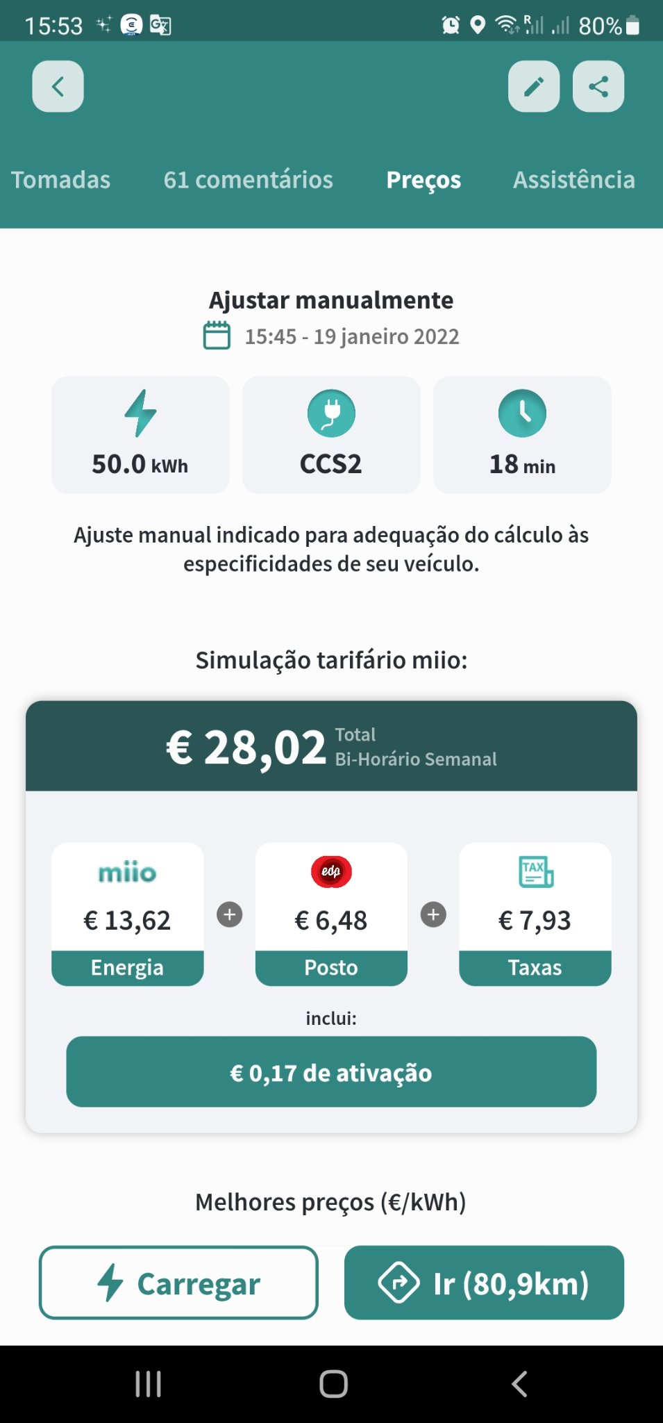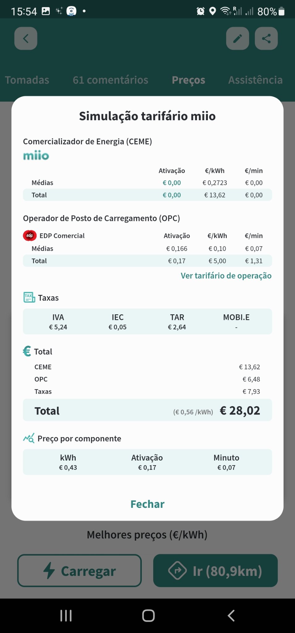 Se quiser perceber um pouco melhor instale a aplicação miio, mas não esteve longe, no essêncial, falhou sobretudo no custo do kWh, embora a operação do postos seja 0,1€/min e não os 0,07€/min que considerou.