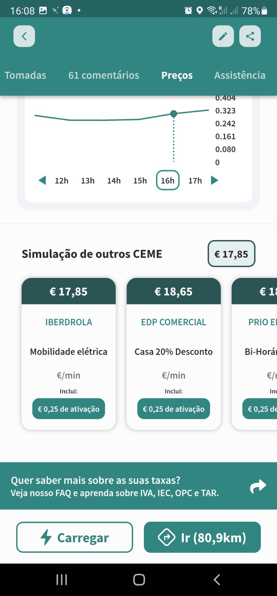 Não se esqueça que em Portugal a energia é vendida por uma empresa (CEME) e o serviço de carregamento por outra (OPC), por isso, nunca poderia ser a 0,6€/kWh só energia.