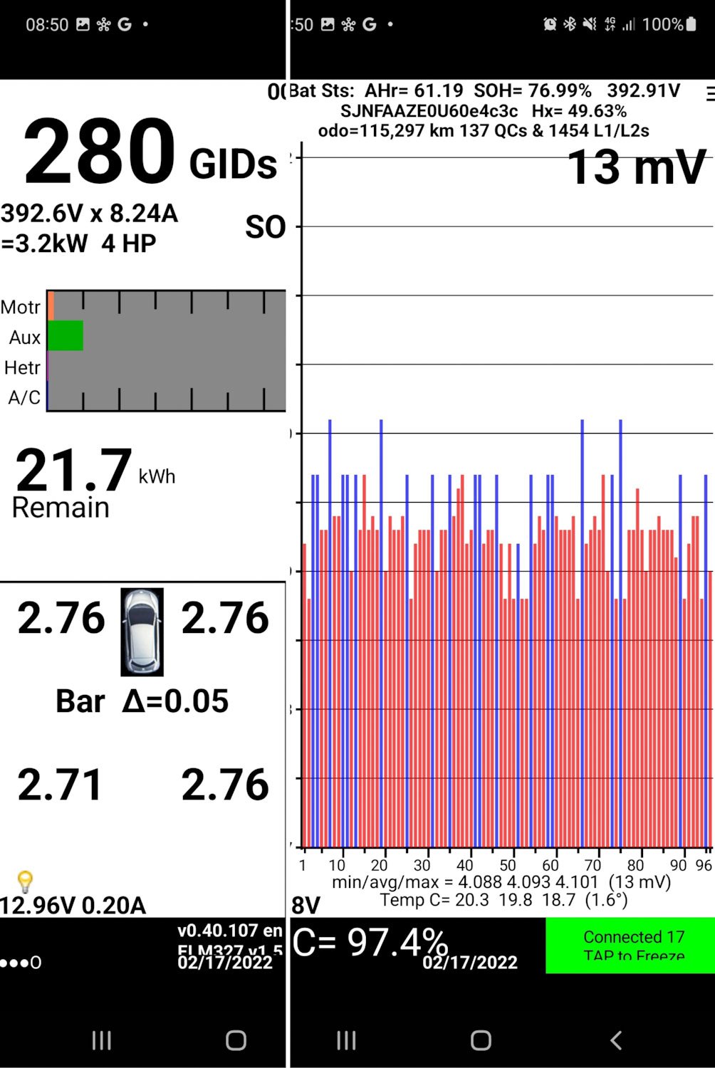 O SOH atingiu esta semana também novo mínimo, apresentando também agora 21,7 kWh úteis a 100%.