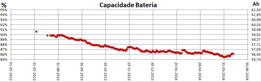 Capacidade bateria: 43,23 Ah (8 Barras)