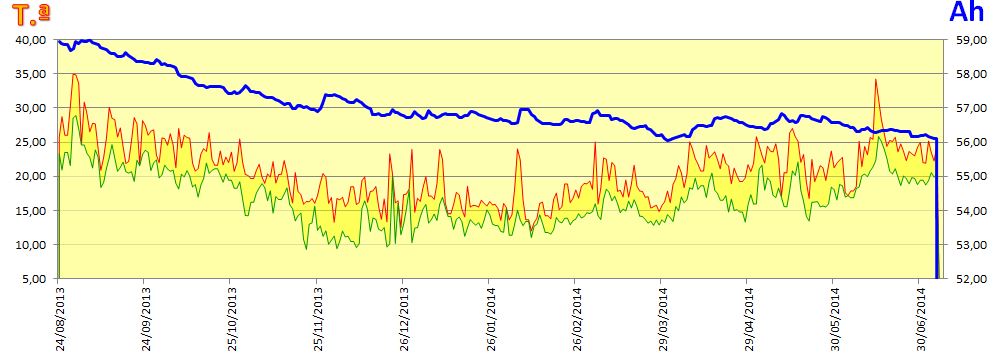 Fiz agora este gráfico com os registos da média dos 4 sensores (mínimo do dia vs máximo do dia):