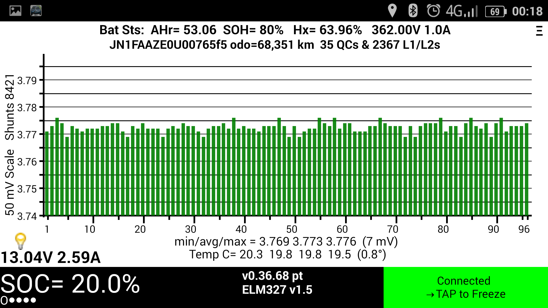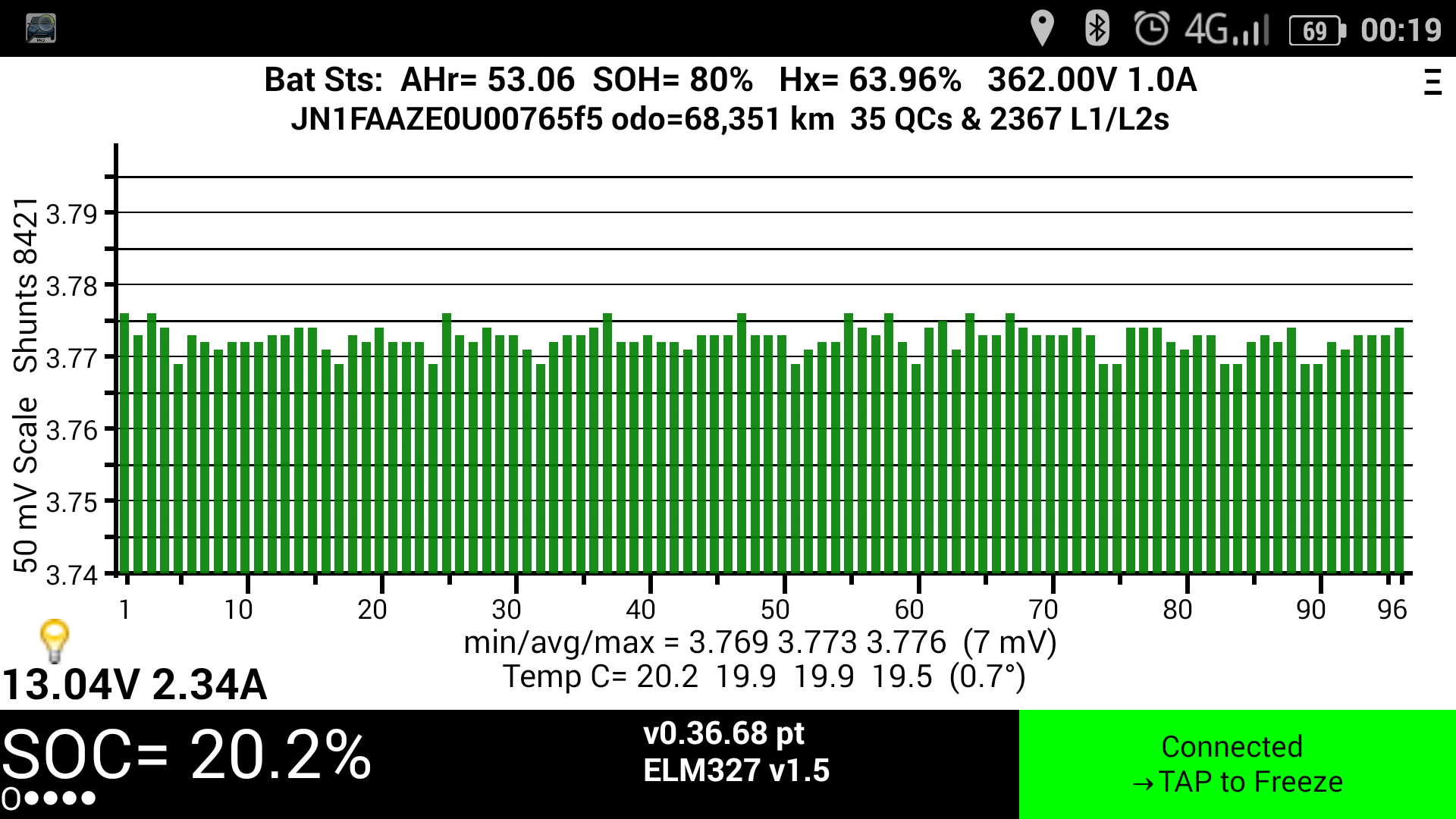 O meu tem menos quilómetros 63 000 o spyleaf reporta 49,99Ah