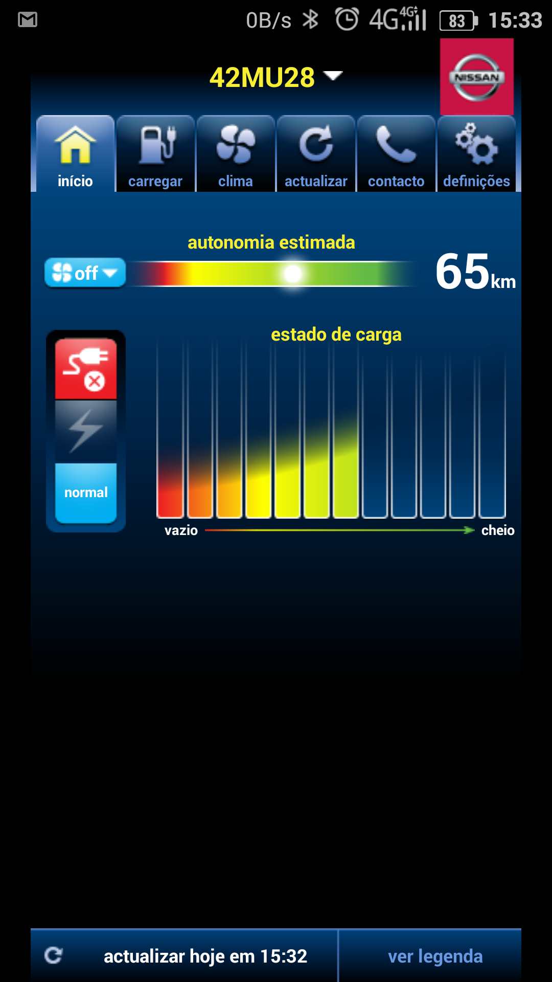 labutess Escreveu:Mas se ligares a aplicação do Carwings do pc ou tlm tens a carga em %