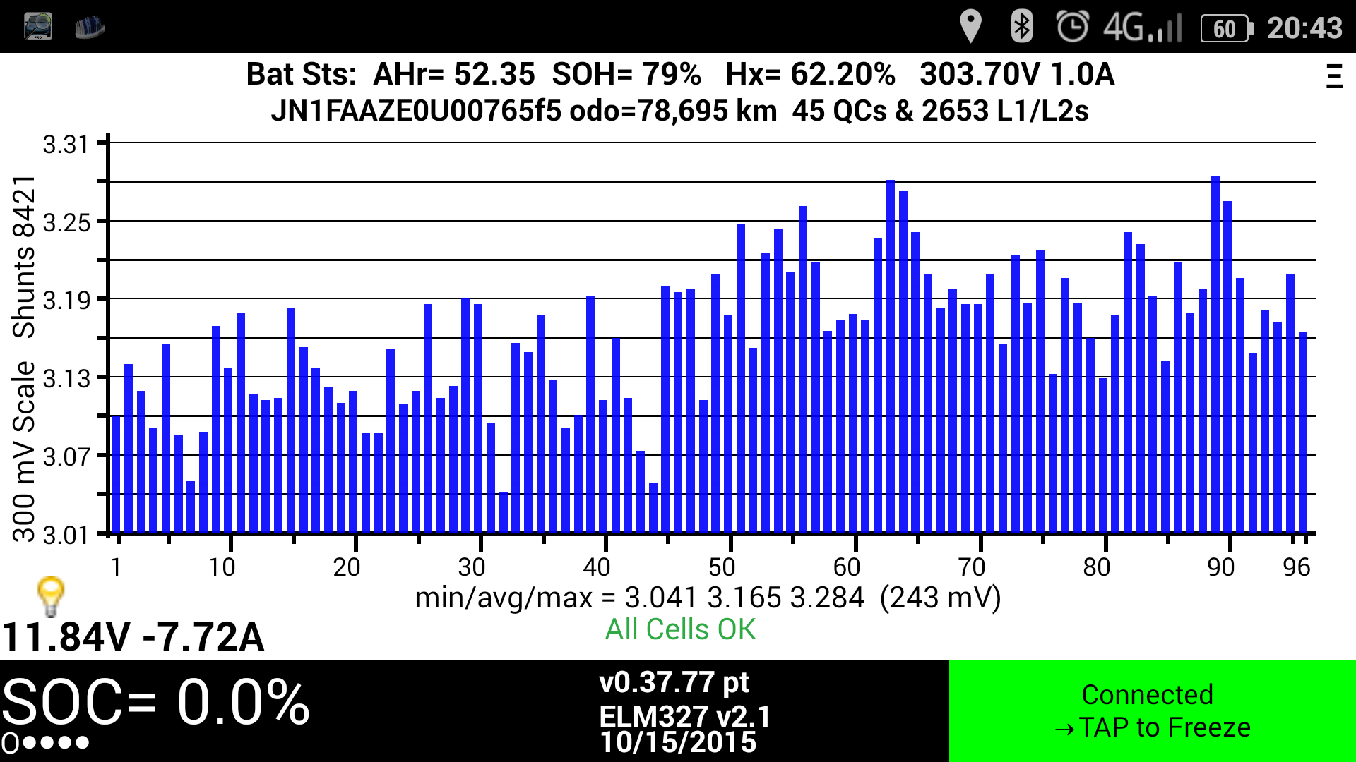 Por isso deixei descarregar sempre mesmo depois da tartaruga até que ele desligou o contactor e tudo voltou a ficar normal. Desta forma, acabei por não registar para a posteridade o bichito carapaçudo e a limitação de autonomia. Também não registei a tensão da célula 32 que chegou pelo menos aos 2,9v.