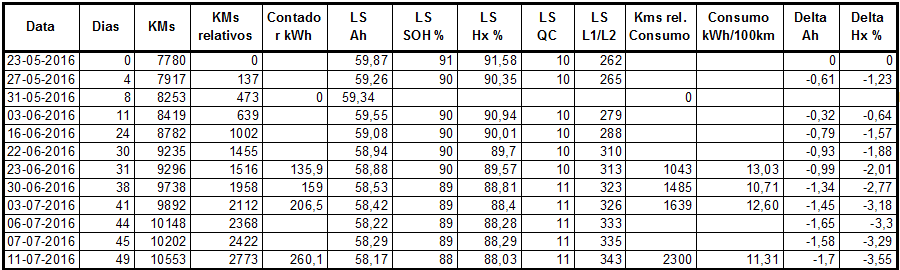 Aqui o calor, os chineses ou o ca....... não serão muito diferentes. Mas nos mesmos 49 dias eu perdi entre 0,2 a 0,3 Ah. Parece-me que a forma como ambos os carros fazem as contas é bastante diferente e essa é a razão principal para tão grande discrepância (para além de o meu pack ter à volta de metade da capacidade). Mas para mim o mais interessante é, mais uma vez, estar a seguir algo que ninguém me pode dizer como vai ser. Porque o Leaf não serve como modelo, como se vê. Um dia destes vocês estão a recuperar e eu a perder, e não me vou ralar nada porque eu sou apenas, diferente.