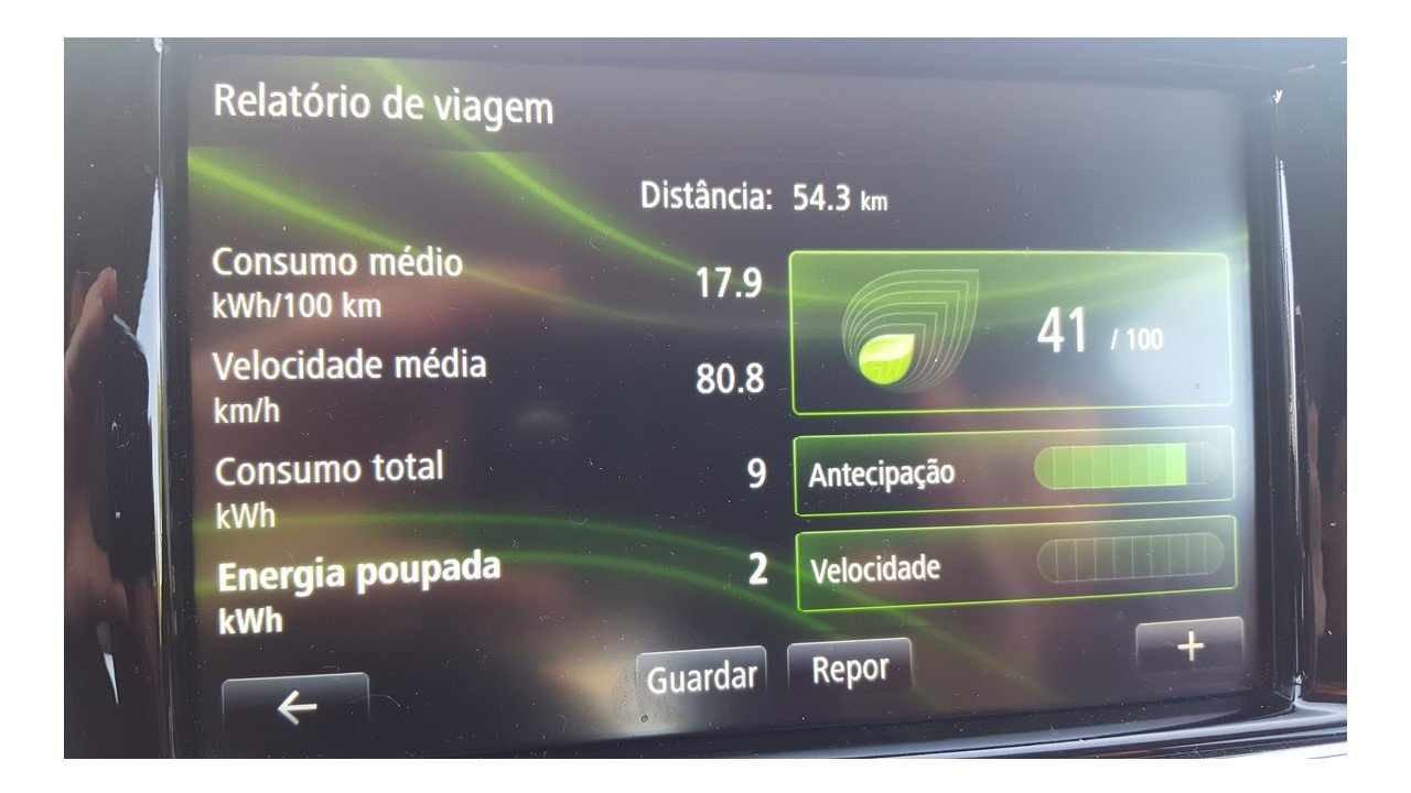 O Consumo médio foi de 17,9 kWh/100 km com uma velocidade média de 80,8 km/h. À saída da A8 o consumo médio estava mais próximo do 20 kWh/100 km
