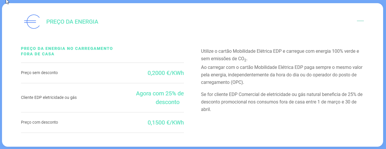 Mas o tarifário da Mobilidade Electrica da EDP já tinha essas condições mesmo antes da parceira com a UVE.