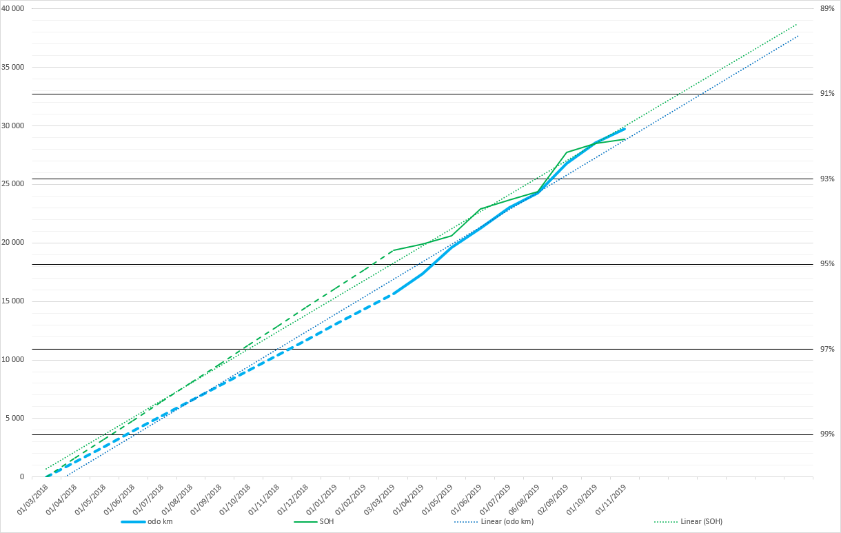 • nos 8 meses seguintes: 15000km, perda de 3% de SOH