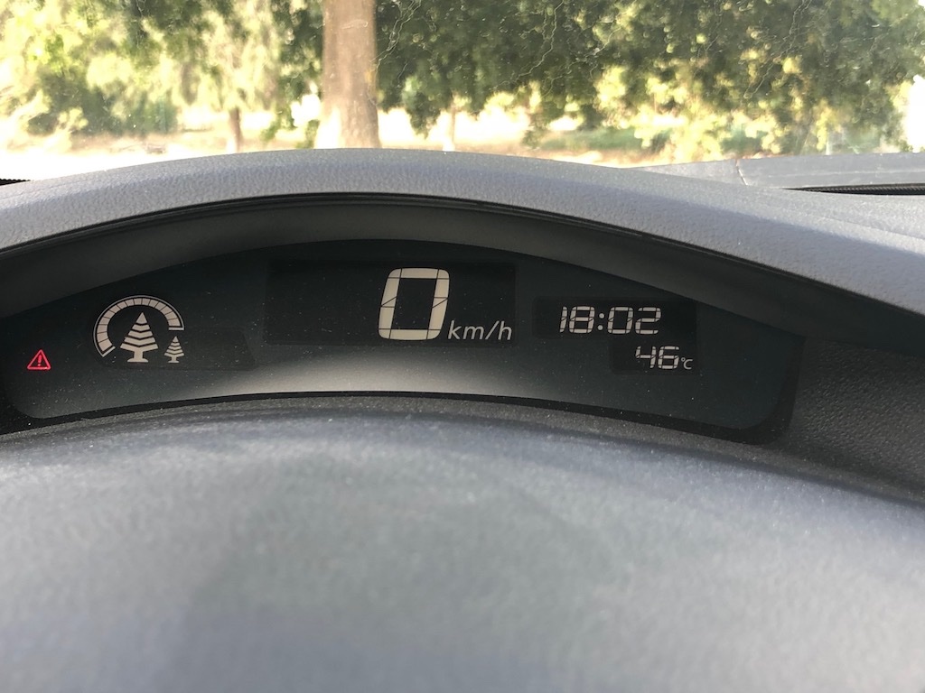 Enquanto falávamos do que poderia estar a causar o problema (culpado provável seria a temperatura, aqui já nos 46º) comecei a perceber que com o pessoal no carro a gastar A/C e sem saber se ia conseguir carregar mais alguma coisa, mais valia seguir viagem, diminuindo a velocidade para que os 96 Kms de autonomia estimada chegassem para os 77 Kms de percurso ainda pela frente…