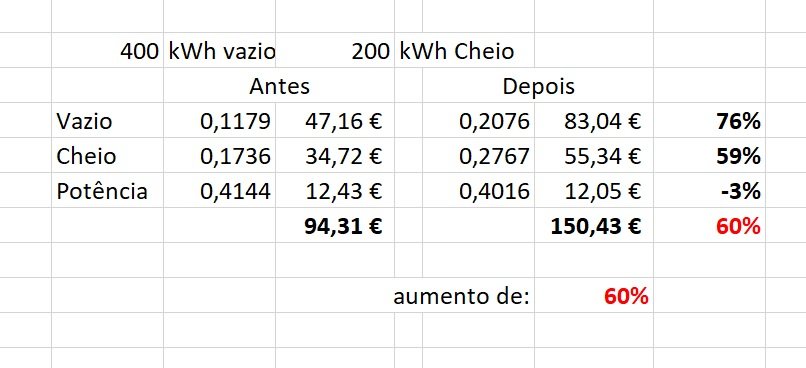 EDIT: aumento de 45% para um consumo de 100+100kWh!!!