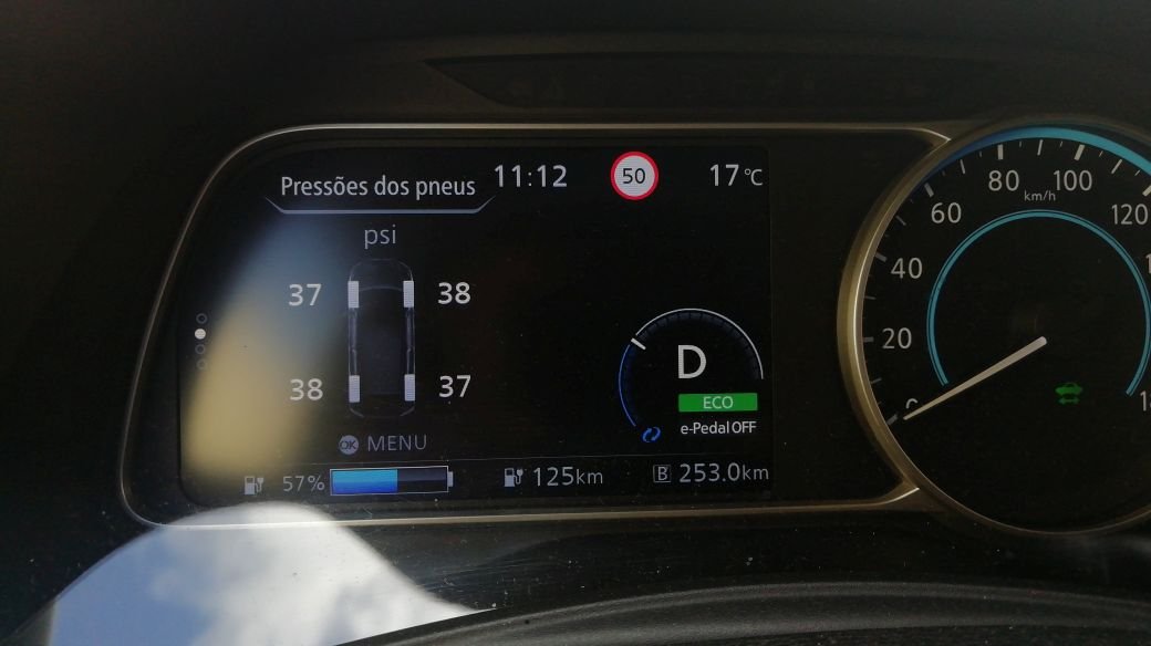 No Nissan Leaf 1, não tenho a certeza se todos têm medidores de pressão. Os que têm, o carro avisa quando há pneus com baixa pressão.