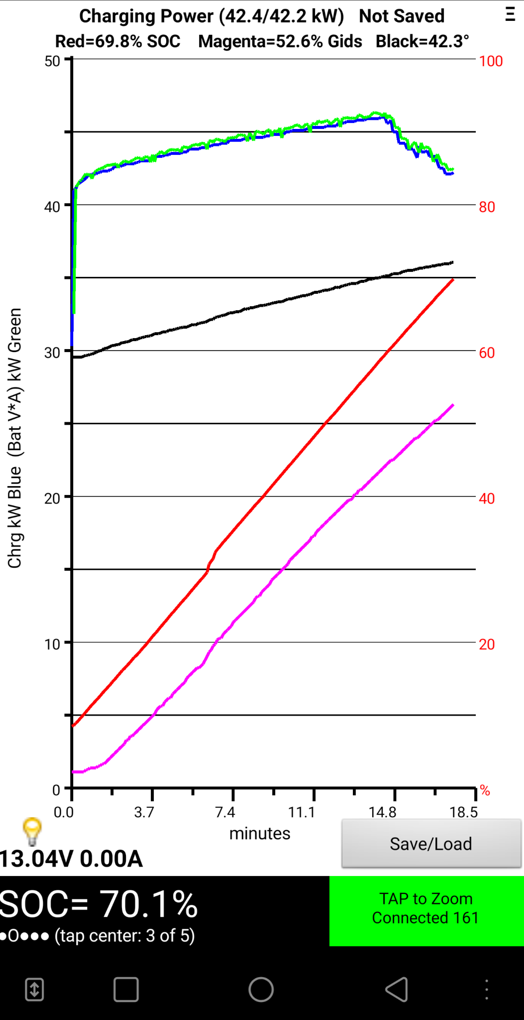 Para verificar isso levianamente, penso que podemos ver a tensão das células no LeafSpy durante o carregamento. E corrijam-me se estiver equivocado: Se durante o carregamento DC houver limitação de potência por parte do carregador (SOC < 75 ou 80%) e a célula com tensão mais alta estiver no limite máximo, há de facto RI real a impedir mais potência. Se houver essa limitação e a célula com tensão mais elevada estiver longe do limite, a RI que ele pensa que tem é fantasiosa.
