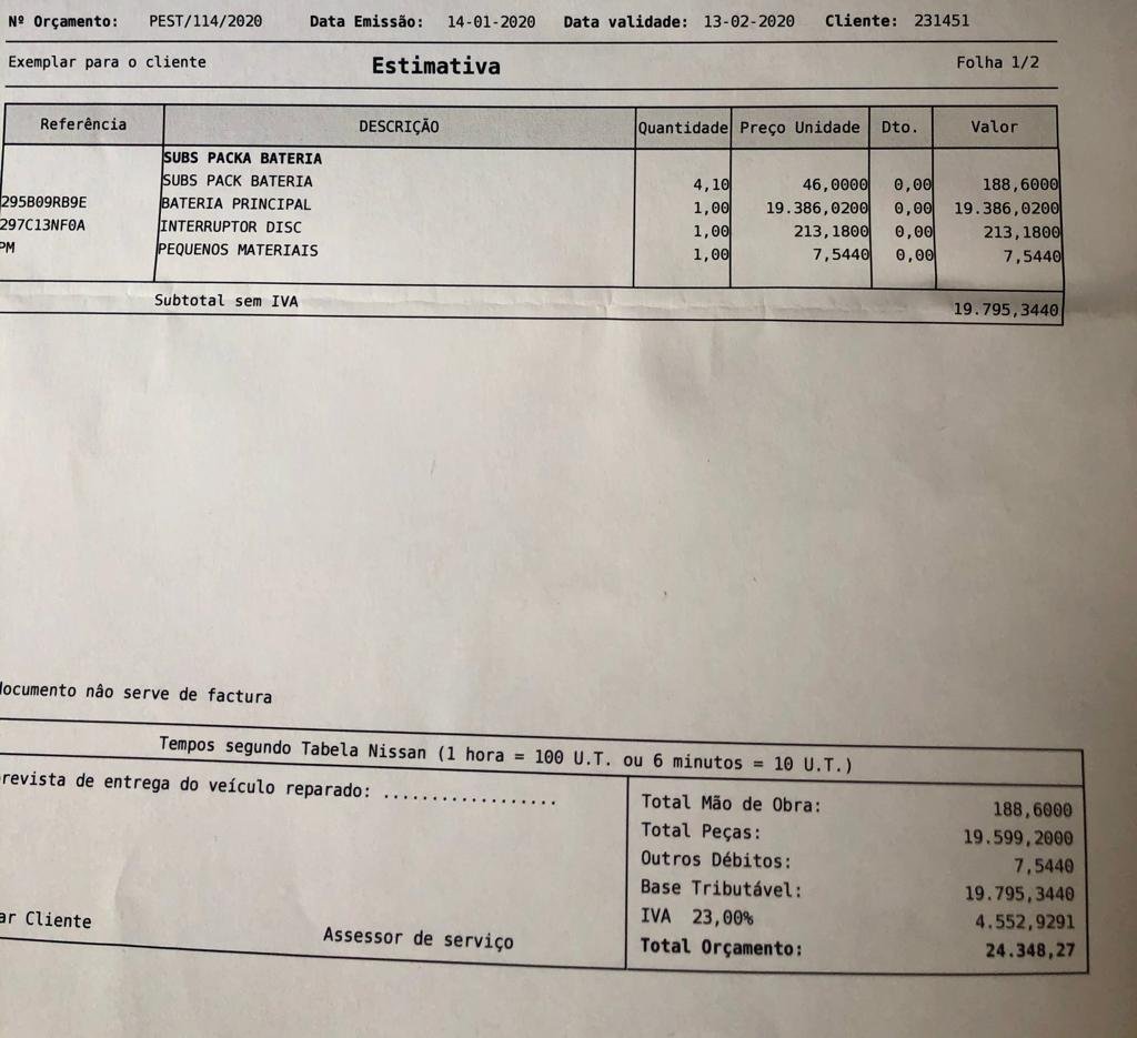 Podes partilhar uma imagem desse orçamento?frankesousa Escreveu: 14 jan 2020, 14:07 Tenho aqui mais um orçamento para um Leaf 2011 a 20k€.
