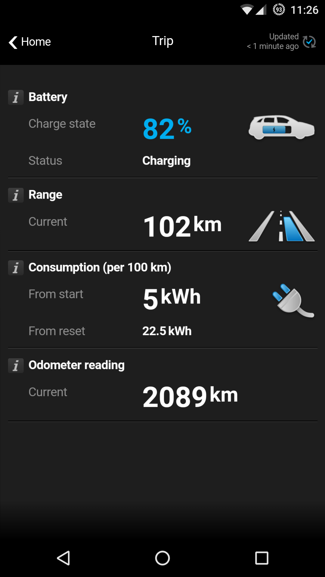 Este carro, pelo que já percebi, mostra os consumos incluindo as perdas no carregamento. Se eu fizer as contas usando a diferença de percentagem da bateria e os kms percorridos, o consumo real é 11/12% mais baixo.