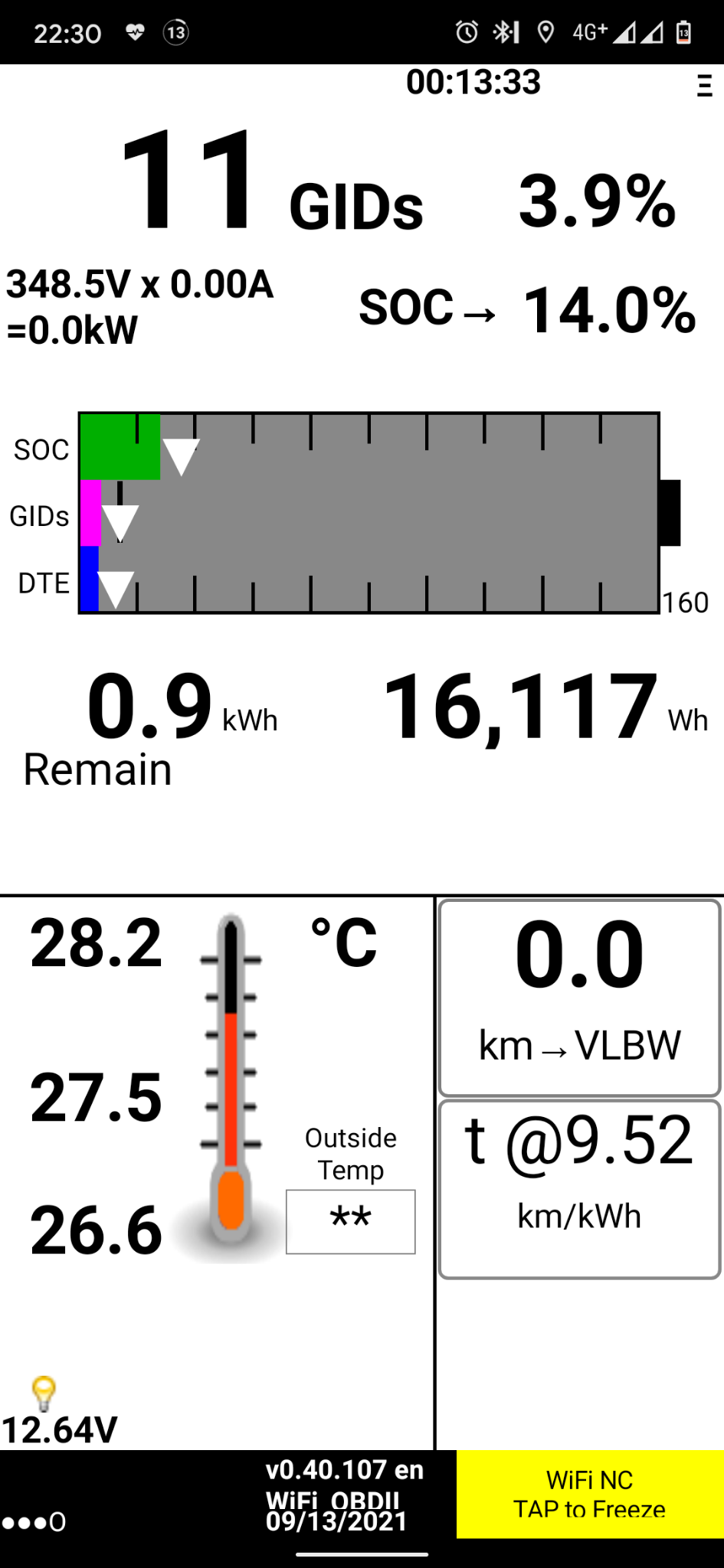 O melhor mesmo é acompanhantes a voltagem da célula mais fraca. É ela que determina quando o carro pára. Pela voltagem quer me parecer que tens um leaf de 24kwh kwh e não tendo a certeza absoluta, o carro pára quando a voltagem da célula mais fraca ronda os 2.9V.