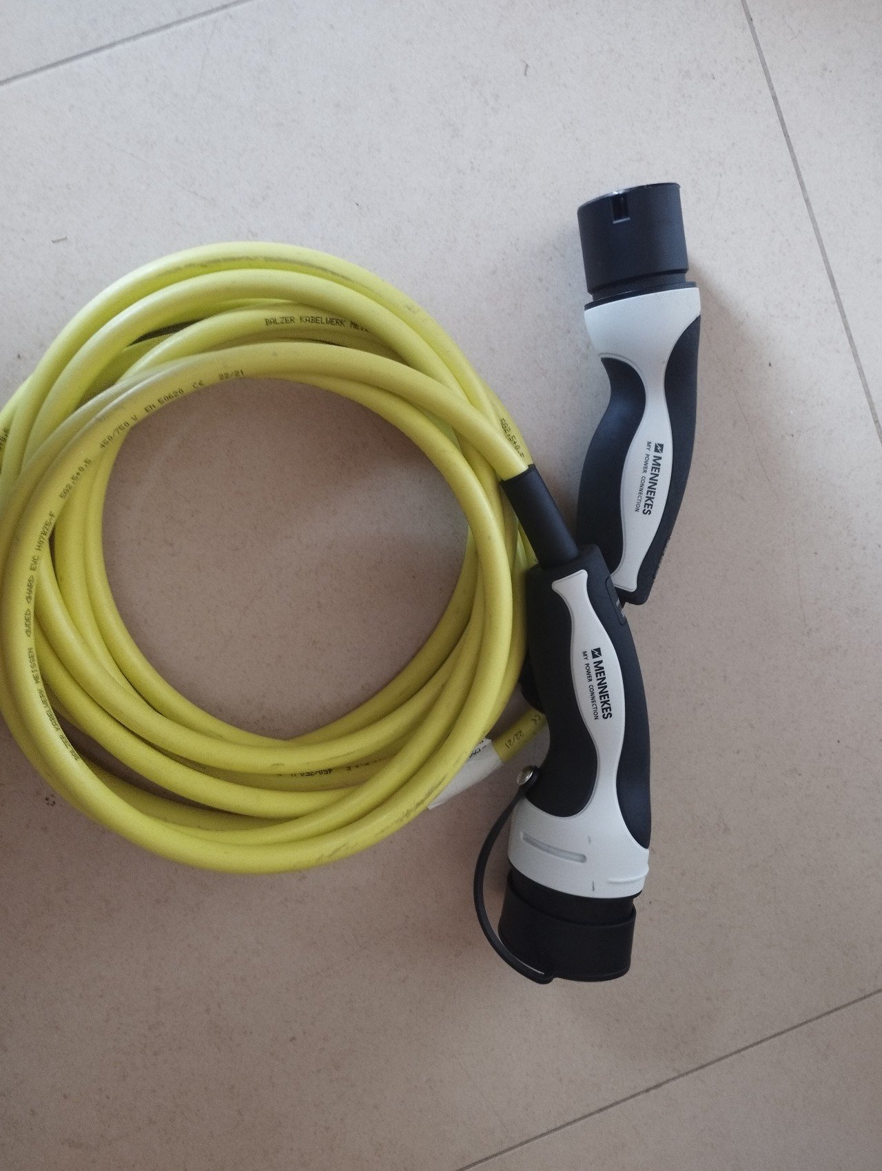 Outro é um Mennekes que vinha num ID.3. É trifásico 20 A. Está também em muito bom estado. - 80 euros.